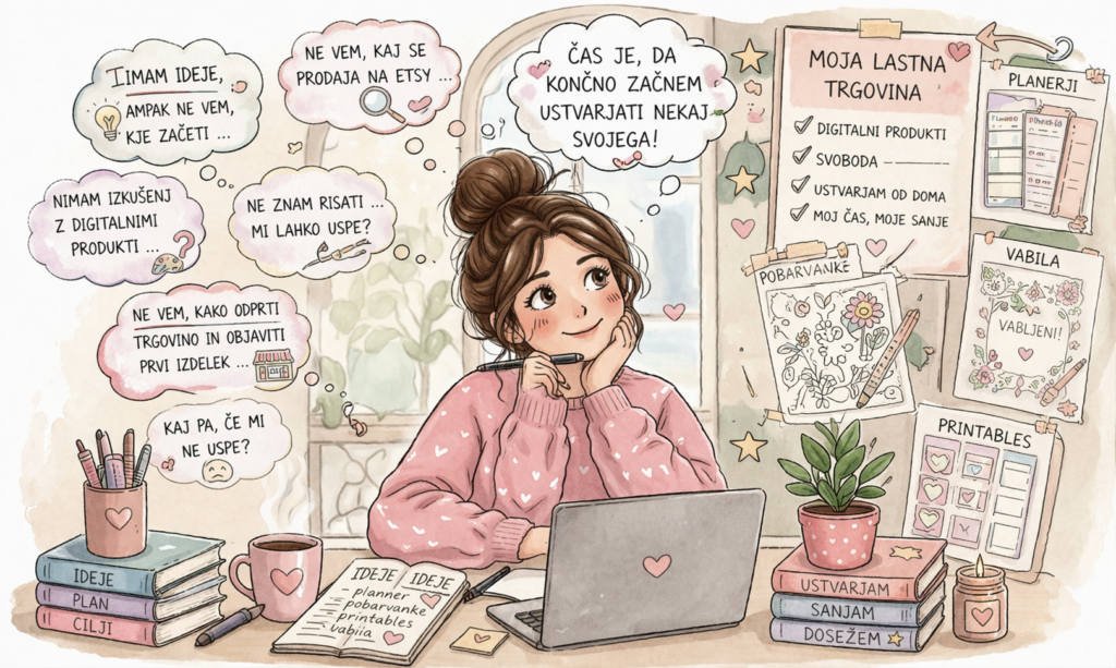 Ustvari svojo Etsy (in Amazon KDP) trgovino in začni prodajati digitalne izdelke – skupaj z mano, korak za korakom, od ideje do prve objave produkta.